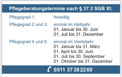 Pflegeberatung nach § 37.3 SGB XI und Schulungen nach § 45 SGB XI